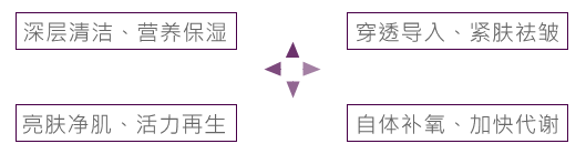 独有的Capsugem加氧动能按摩头辅以特别设计的震动频率和幅度,产生海量的二氧化碳微气泡,渗透至皮肤深层产生微爆破,引发奇妙的波尔效应,促进体内血红蛋白释放新氧,激活细胞自愈能力,肌肤焕生。